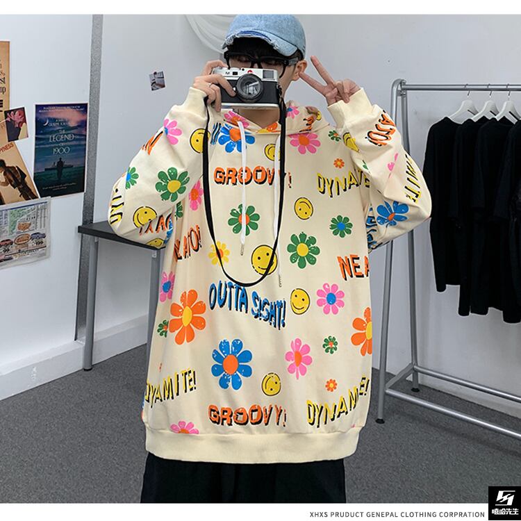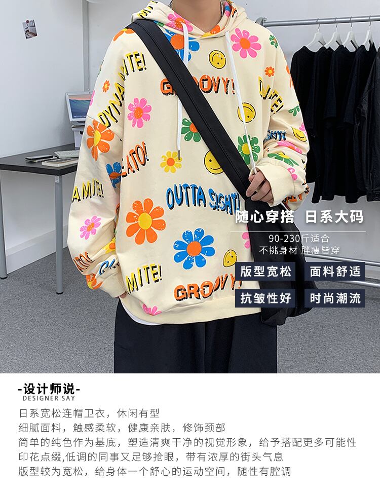 プリント柄フードセーター オータムスタイルジャケット ルーズカジュアル 大きめサイズ 秋物 ヒップホッププラスサイズ96955151892