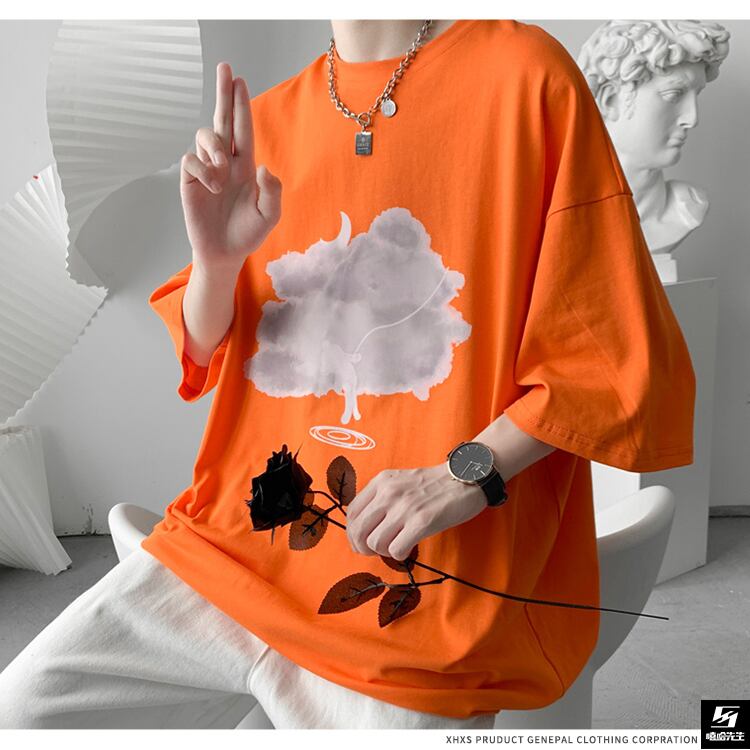 プリントスリーブTシャツ シャツ サマールーズ半袖 ハーフスリーブ 大きめサイズ 夏物 ヒップホッププラスサイズ43230441842