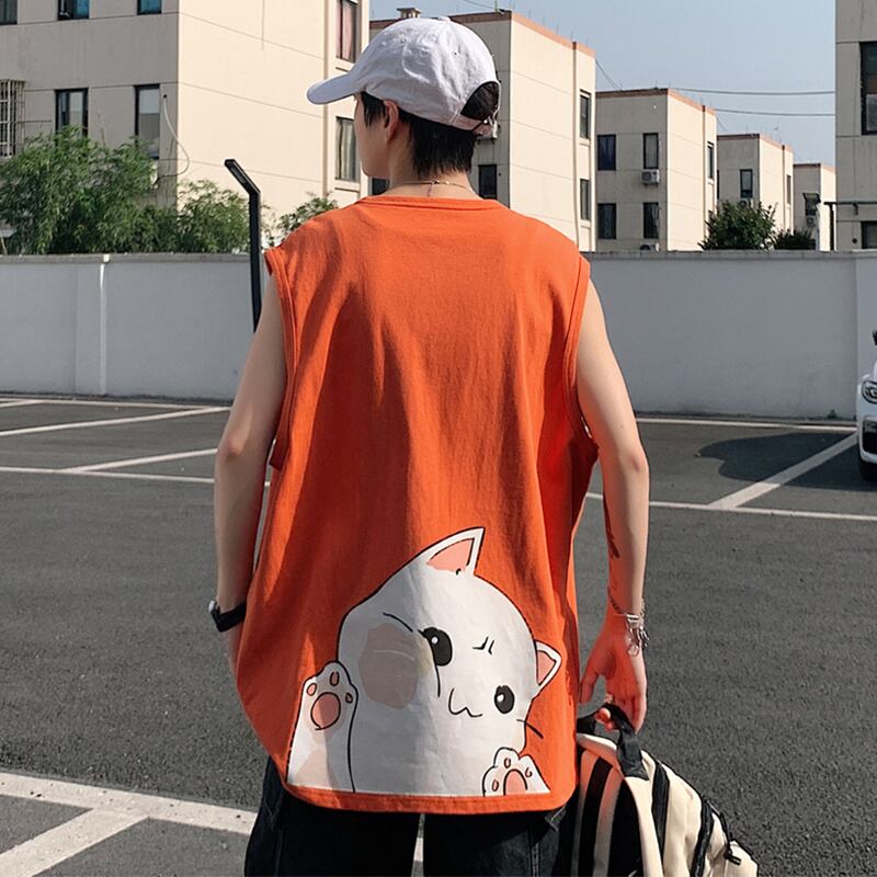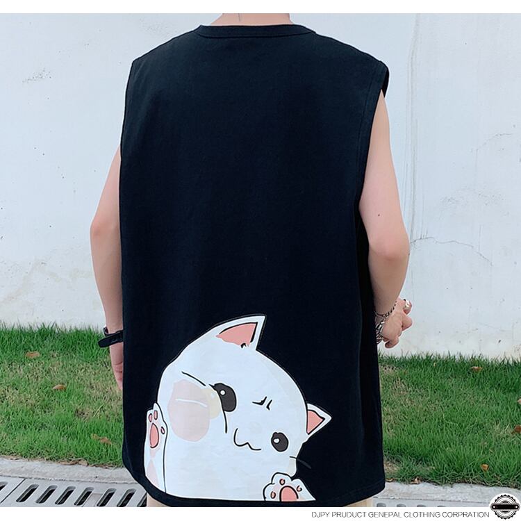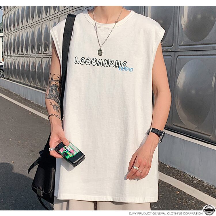 サマーノースリーブTシャツ ルーズトップス プリント 大きめサイズ 夏物 ヒップホッププラスサイズ61234973376