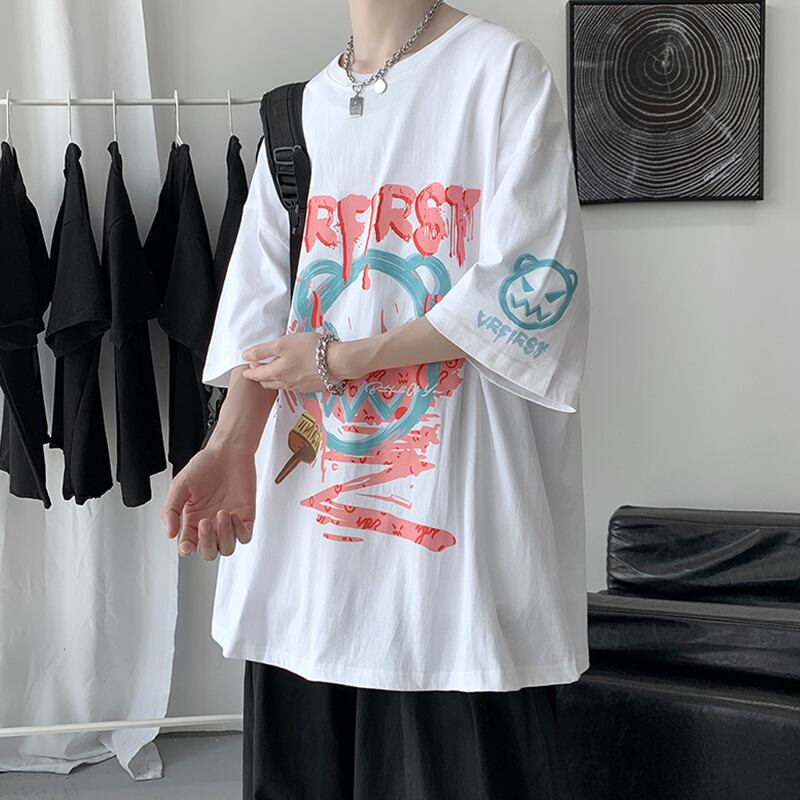 スリーブTシャツ シャツ ルーズカジュアル半袖 ハーフスリーブ 大きめサイズ ヒップホッププラスサイズ81235282596