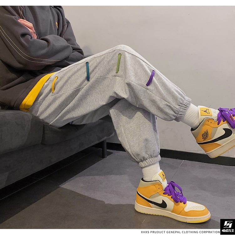カラーストライプカジュアルパンツ オータムルーズスタイル 大きめサイズ 秋物 ヒップホッププラスサイズ18703099307
