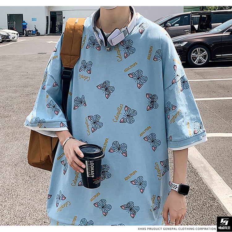 サマースリーブButterflyデザイン スタイルルーズカジュアルTシャツ 大きめサイズ 夏物 ヒップホッププラスサイズ69253697170