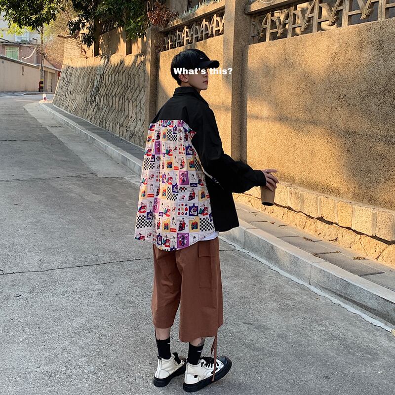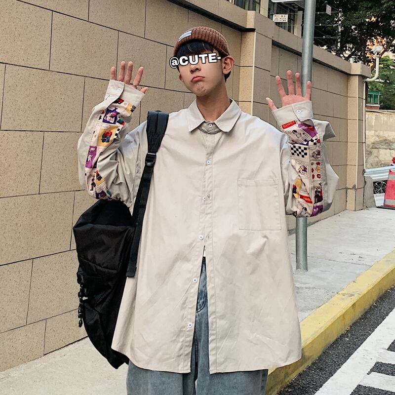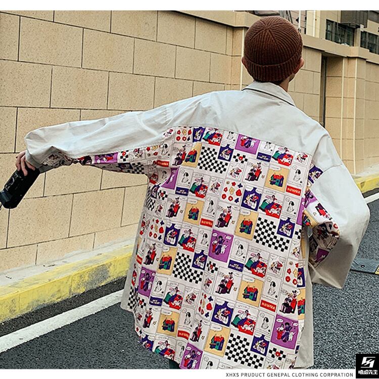 シャツ オータムプリントカジュアルジャケット ルーズ ロング 大きめサイズ 秋物 ヒップホッププラスサイズ312327072