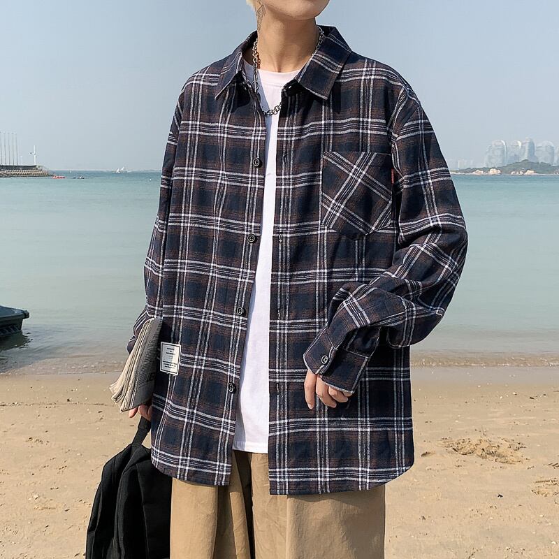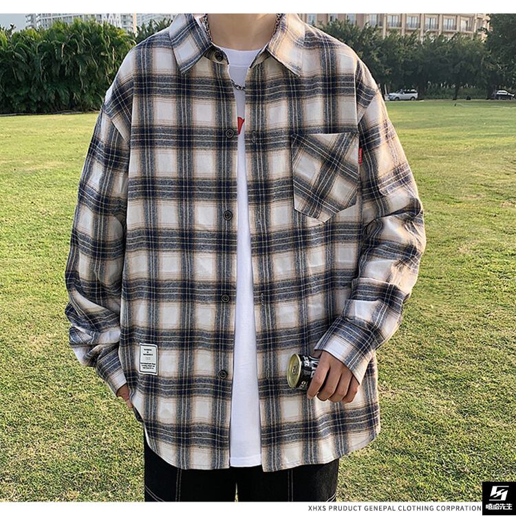 格子柄シャツ オータムカジュアルジャケット スタイルルーズ ロング 大きめサイズ 秋物 ヒップホッププラスサイズ58866857380