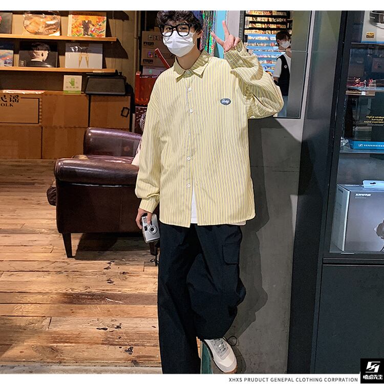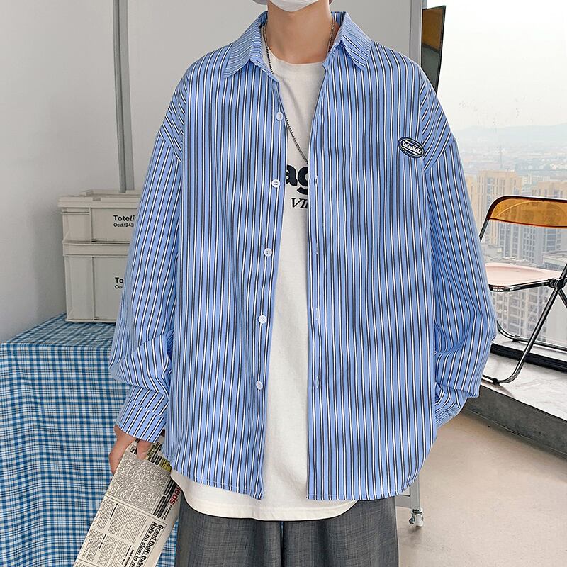 ストライプシャツ ルーズスプリングオータム ロング 大きめサイズ 春物 秋物 ヒップホッププラスサイズ35390406039
