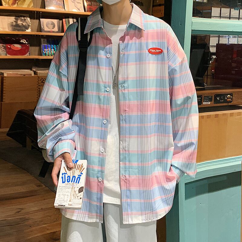 オータム格子柄シャツ ルーズカジュアルスタイルジャケット ロング 大きめサイズ 秋物 ヒップホッププラスサイズ4005125483