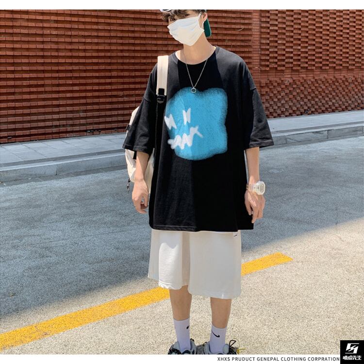ラウンドネックサマールーズTシャツ トップス 大きめサイズ 夏物 Oネック ヒップホッププラスサイズ37740527026