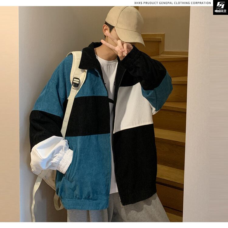 コーデュロイジャケット ルーズスタンダードカラーブロックオータム レトロ 大きめサイズ 秋物 ステッチ ヒップホッププラスサイズ47044272335