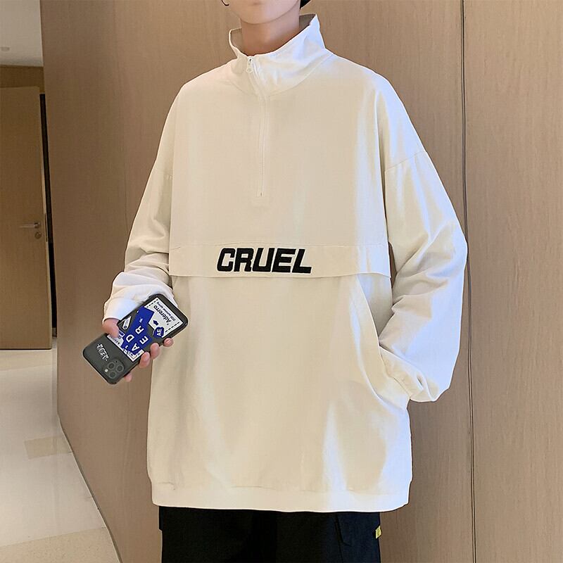 カラージッパーセーター スプリングオータムルーズカジュアル刺繍プルオーバー コート 大きめサイズ 春物 秋物 ヒップホッププラスサイズ82459980971