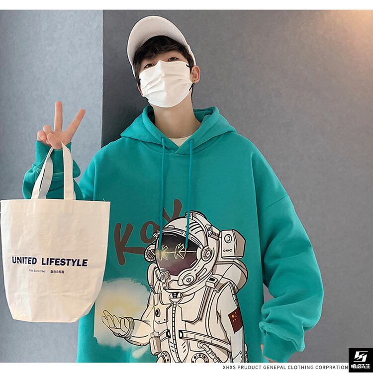 スウェット ルーズフードプリント柄オータムコート ストリート 大きめサイズ 秋物 ヒップホッププラスサイズ29601512510