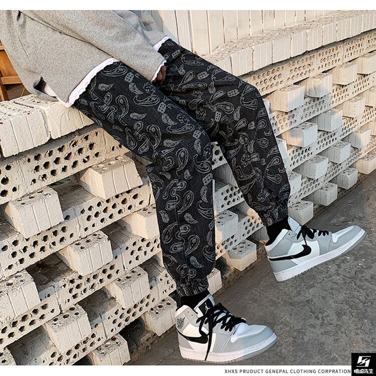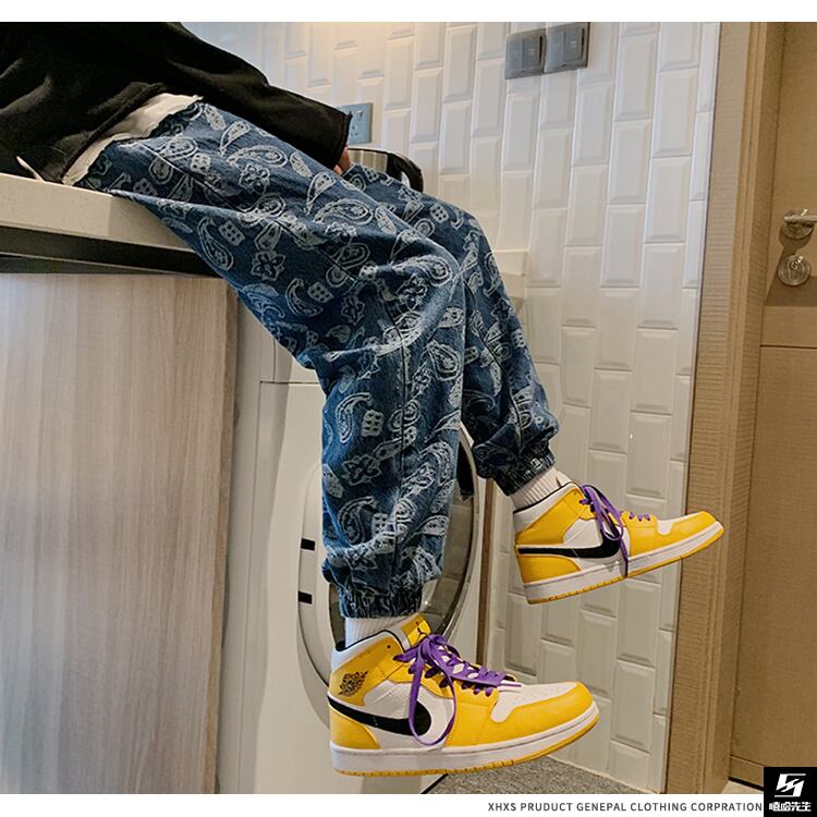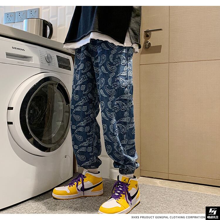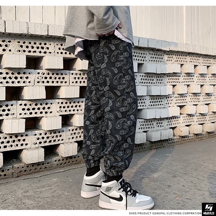 Flowerデザイン ジーンズ ルーズストレッチウェストパンツ スプリングオータムスタイル エラスティック 伸縮 大きめサイズ 春物 秋物 フラワーデザイン ヒップホッププラスサイズ54339282202