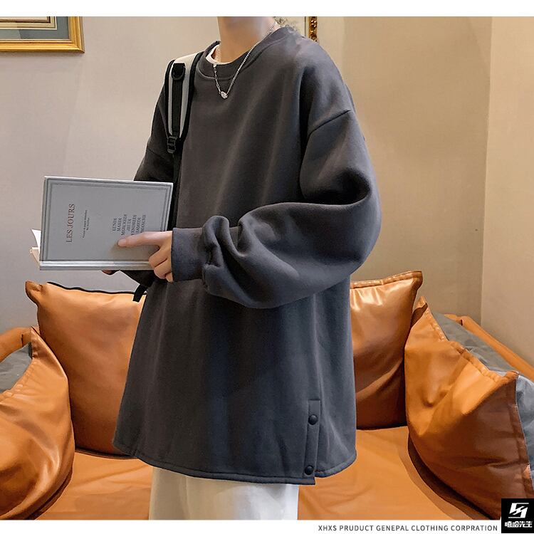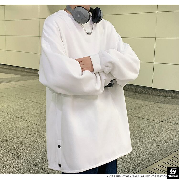 スリットセーター ルーズスプリングオータムラウンドネックジャケット カジュアルフードブレスト ロング 大きめサイズ 春物 秋物 Oネック ヒップホッププラスサイズ80441461179
