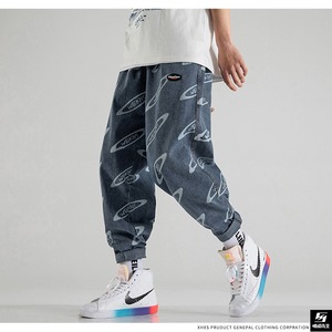 ジーンズ オータムルーズプリントカジュアルパンツ 大きめサイズ 秋物 ヒップホッププラスサイズ15183265678