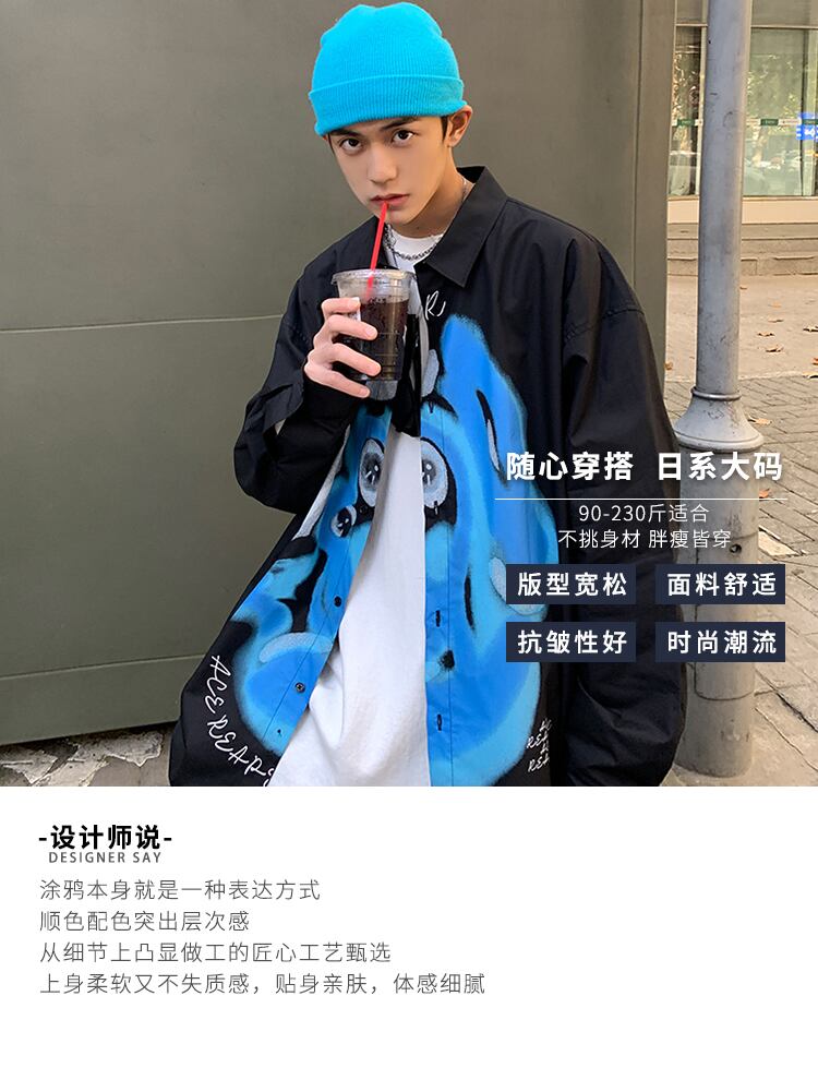 プリントシャツ オータムジャケット スタイルスプリング ロング 大きめサイズ 春物 秋物 ヒップホッププラスサイズ99322667764