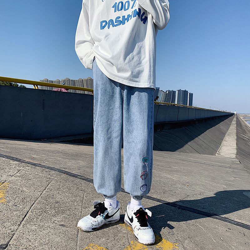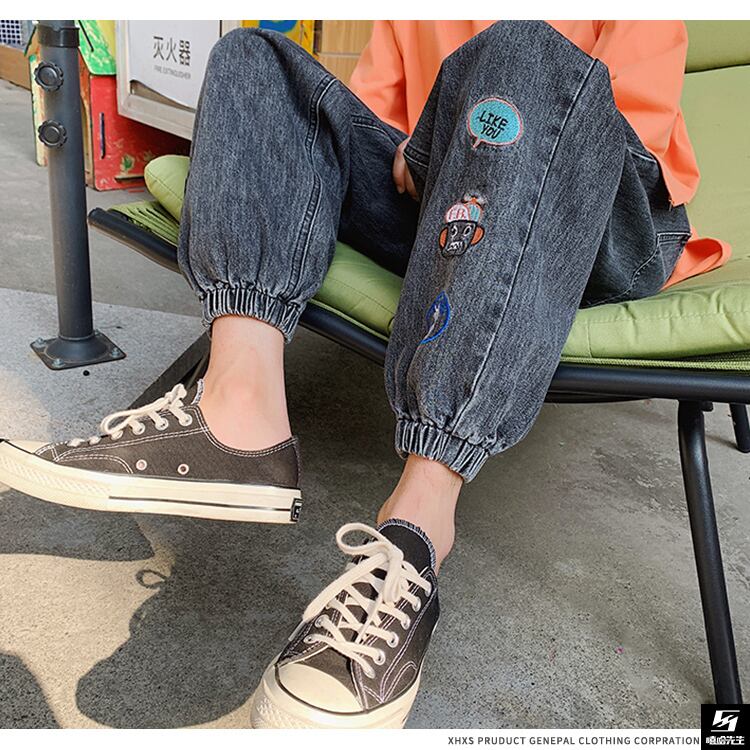 ストレッチウェストジーンズ 刺繍ルーズカジュアルパンツ オータム エラスティック 伸縮 大きめサイズ 秋物 ヒップホッププラスサイズ4305901147
