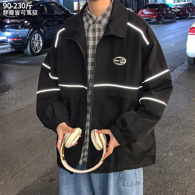 ジャケット ルーズストライプオータム 大きめサイズ 秋物 ヒップホッププラスサイズ97701596756
