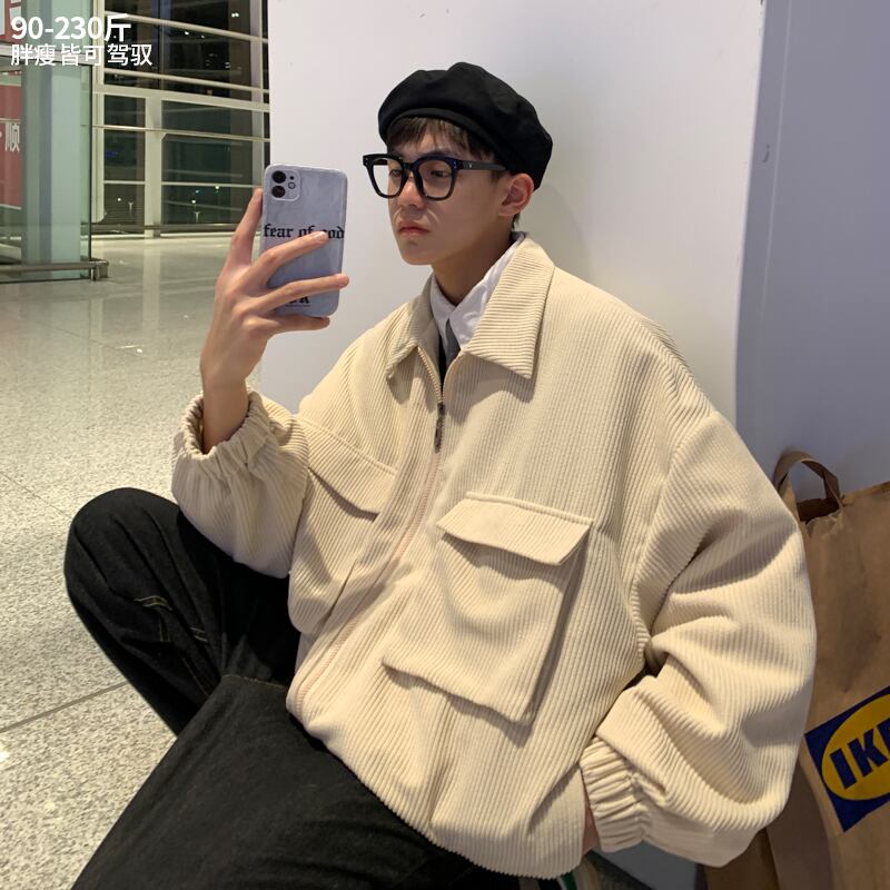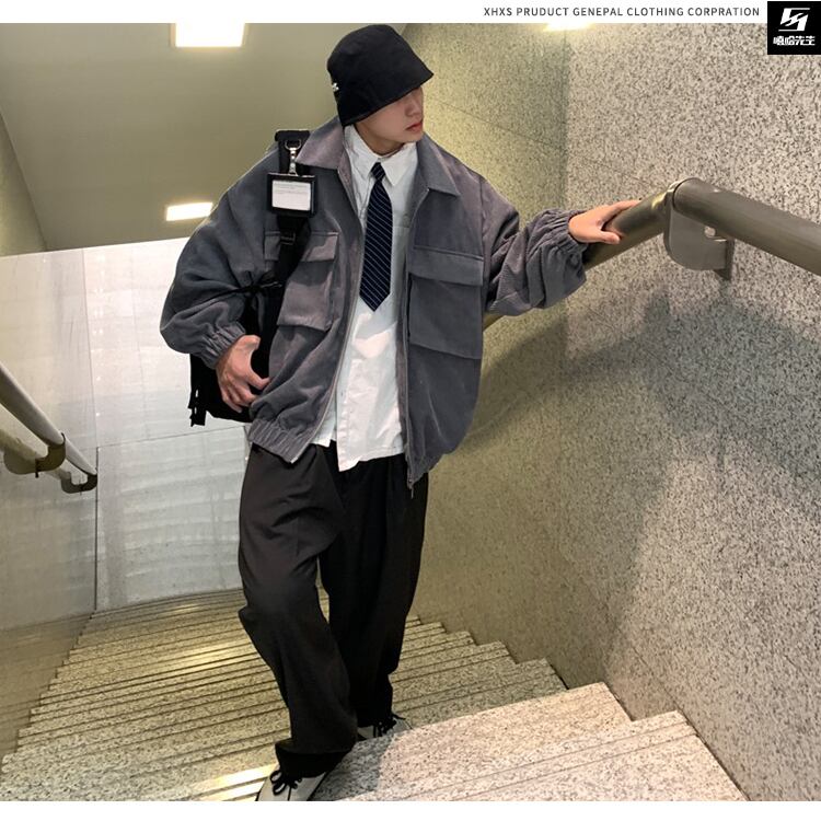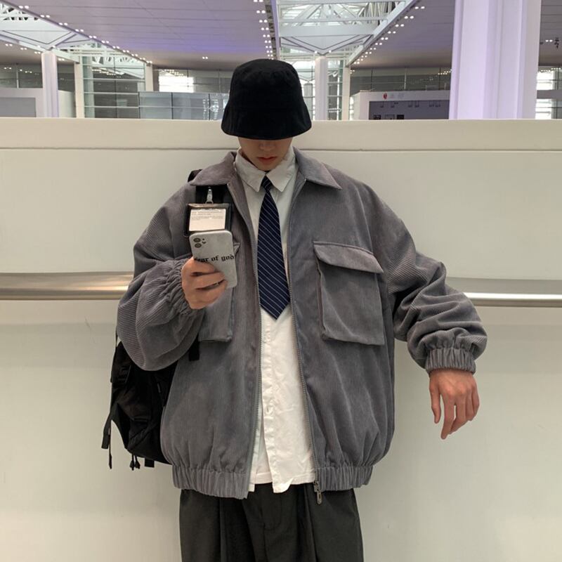 スタンダードコーデュロイジャケット スプリングオータムルーズカジュアル レトロ 大きめサイズ 春物 秋物 ポケット多め マルチポケット ヒップホッププラスサイズ17384911942