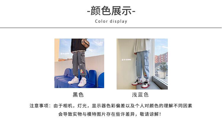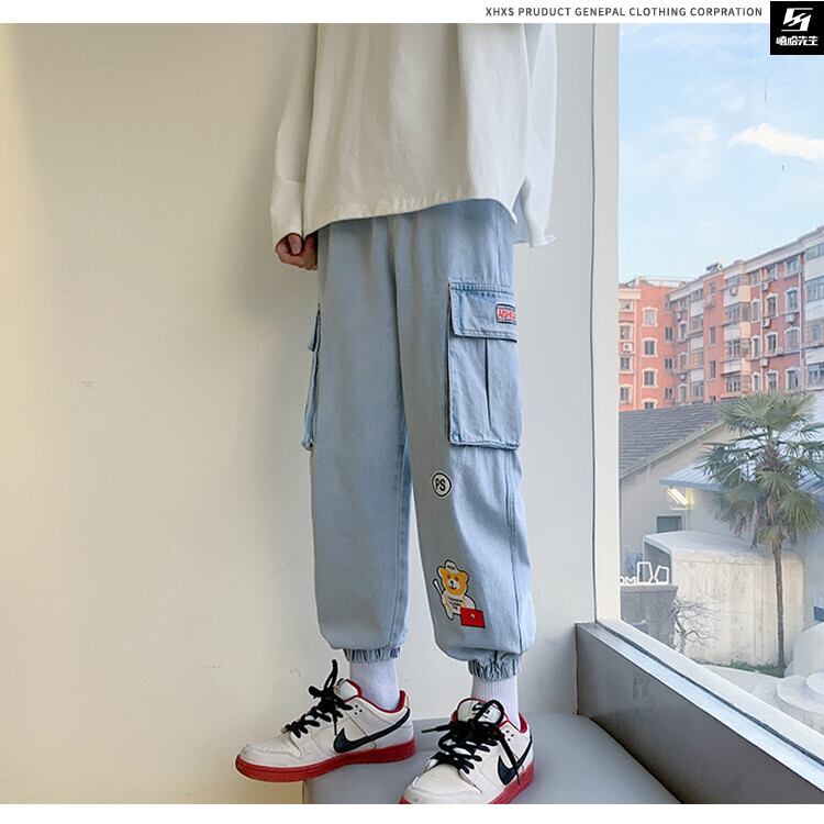 ジーンズ カジュアルロングパンツ スプリングオータム 大きめサイズ 春物 秋物 ポケット多め マルチポケット ヒップホッププラスサイズ38273689932