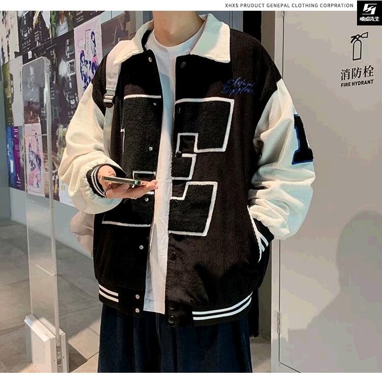 コーデュロイジャケット スプリングオータムルーズ刺繍ヴィンテージ 大きめサイズ 春物 秋物 ビンテージ ヒップホッププラスサイズ3048918581
