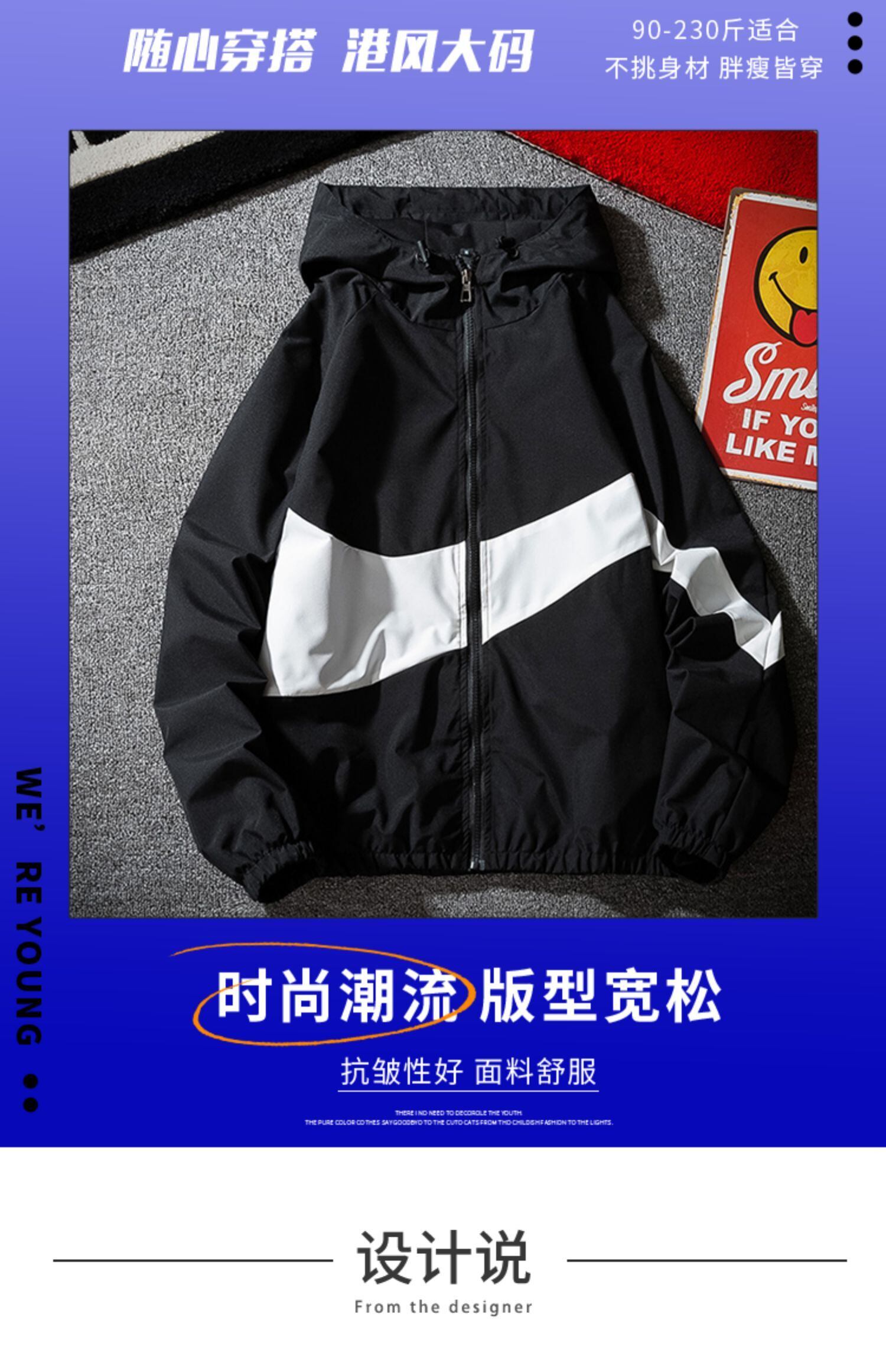 フードルーズジャケット 薄手カラースプリングオータム 大きめサイズ 春物 秋物 ヒップホッププラスサイズ76342478451