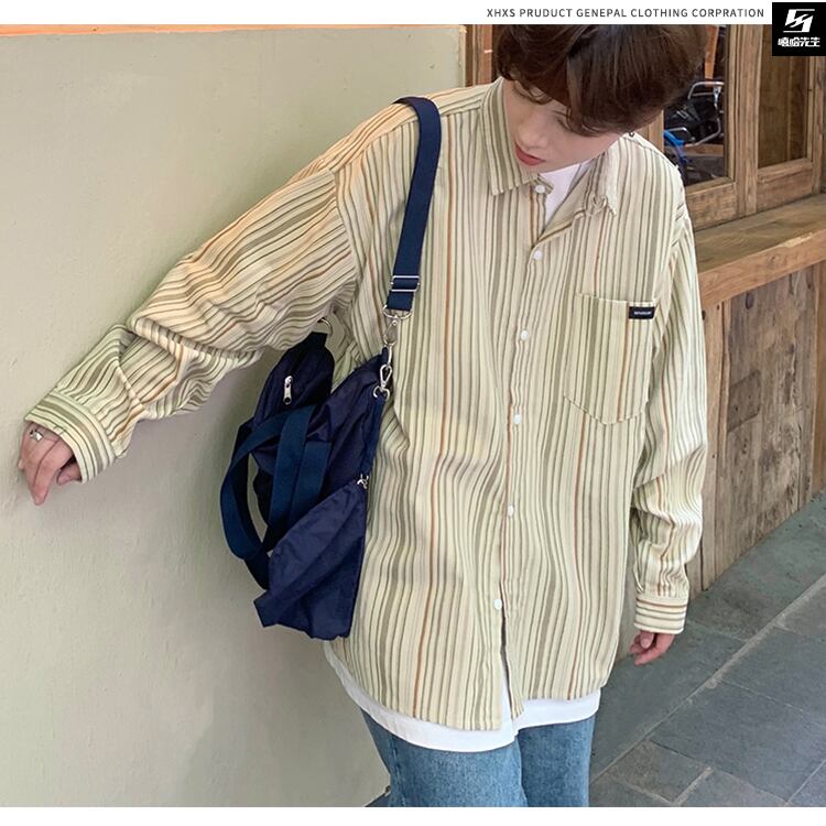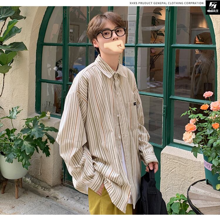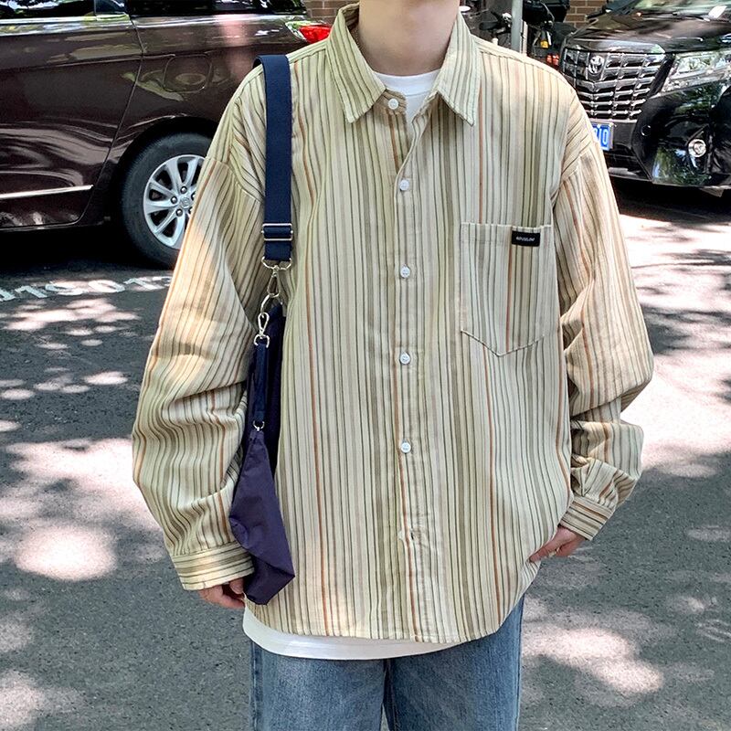 コーデュロイストライプシャツ ルーズカジュアルスタンダードコート スプリングオータム ロング レトロ 大きめサイズ 春物 秋物 ヒップホッププラスサイズ92603530491