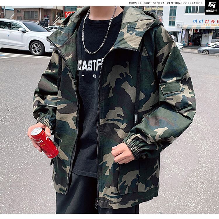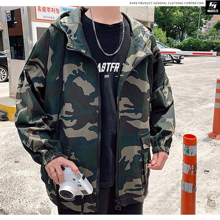 迷彩柄ジャケット フードルーズカジュアルスプリングオータム 大きめサイズ 春物 秋物 ヒップホッププラスサイズ9481765968