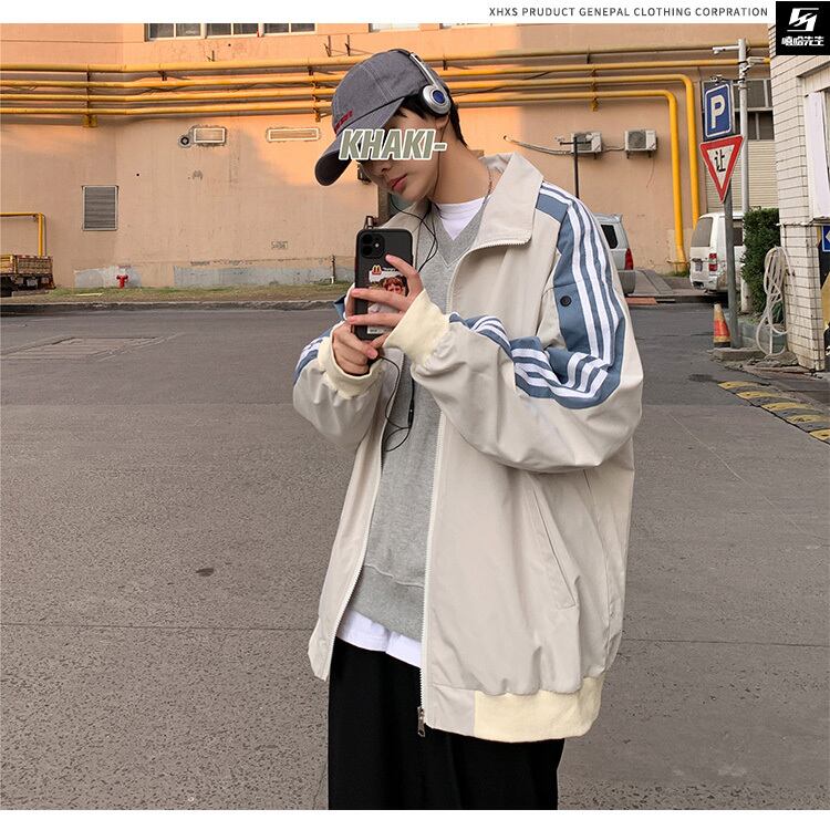 オータムジャケット ルーズカジュアル 大きめサイズ 秋物 ストライプ ヒップホッププラスサイズ48610431899